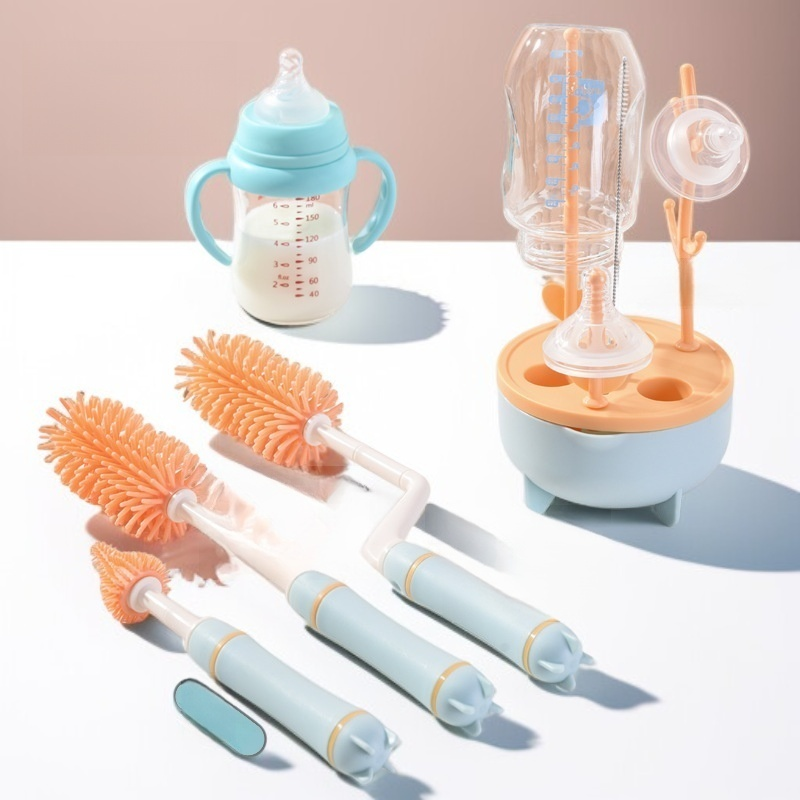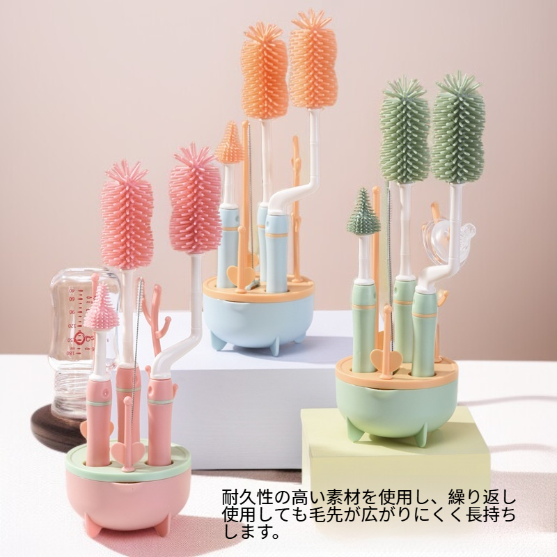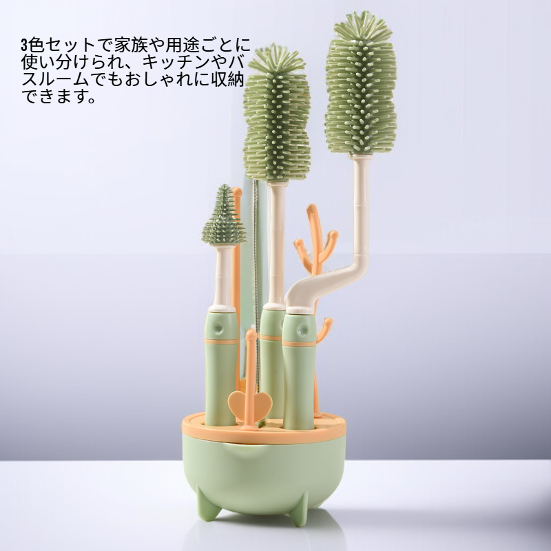 ロングハンドルボトルブラシセット 360度回転クリーニング 3色